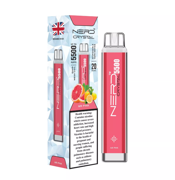 This NERD Crystal Mr Pink can vape up to 5500 puffs. Pre-loaded with 12ml of our award- winning e-liquids. Pre-charged pure cobalt battery. Ready to use instantly right out of the box available at king vape dubai store.